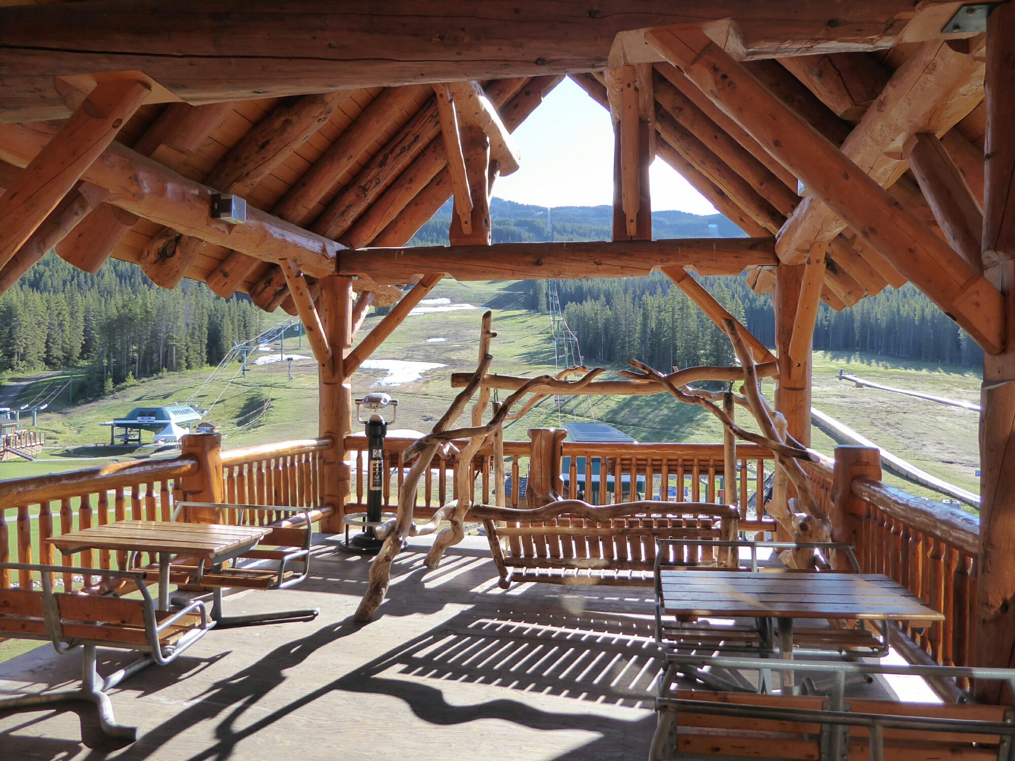 Short video telling us how to respect bears, out to the gondola, into an open chair, barrier bangs down shut and we’re off, me suddenly remembering that I don’t really like this sort of thing…