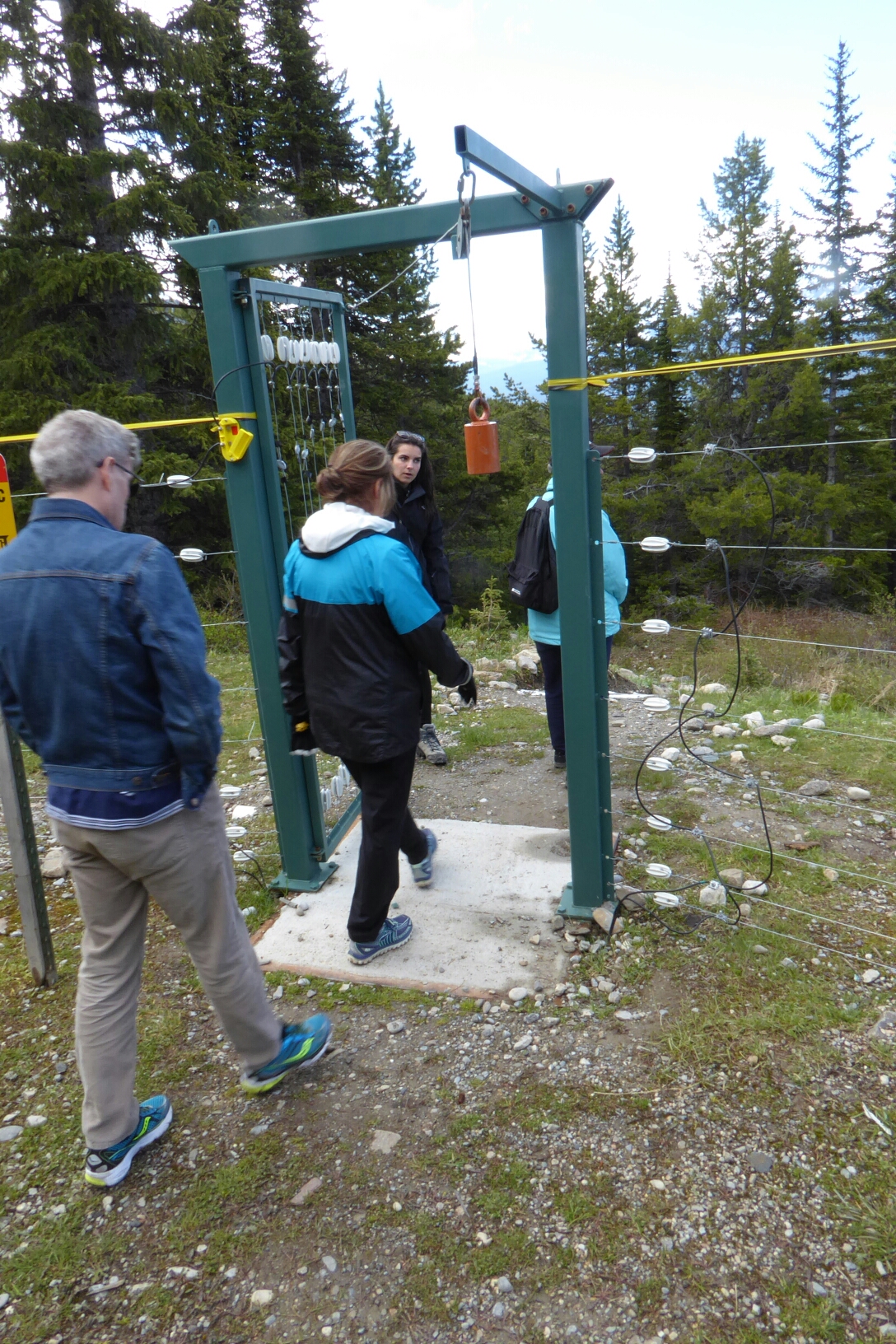 After a leisurely inspection of the exhibits in the centre and another excellent video discussing the pressures of visitors and transport routes (one shot showed 2 miles of parked cars on the road up to Morraine Lake at the height of the summer season) we put on our “outdoor voices” and went through the electric fence around the resort. The drill was to shout “Heh bear!” at intervals because it is good to let them know you’re there… Hmmm.