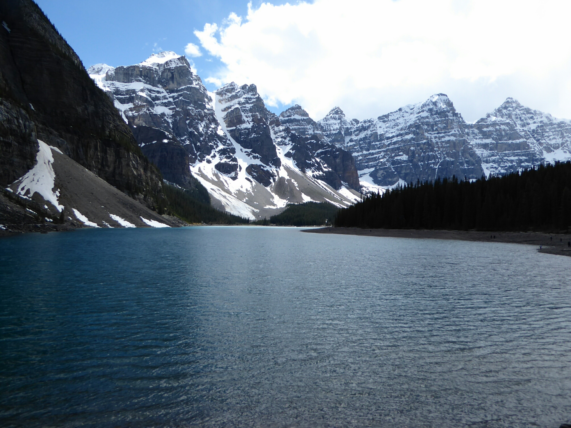 Calling at the village for a couple of sandwiches we set off in the car up the 14km side road to Morraine Lake which had only just been opened after the winter.