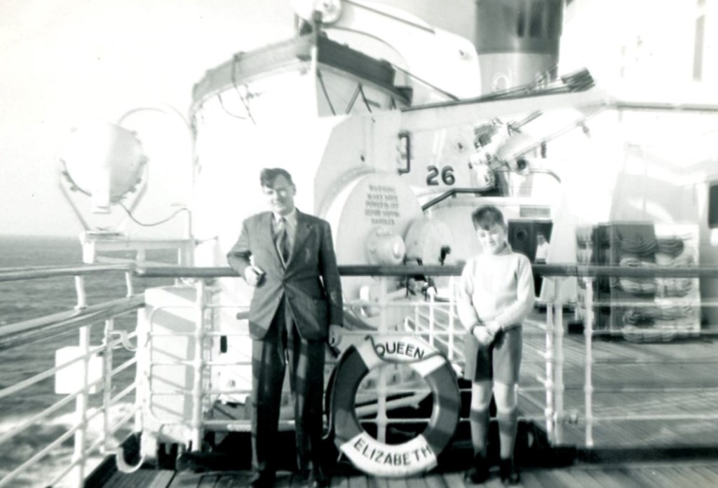 So the family was together on the Queen Elizabeth, except for my elder brother Peter, who had been left at home as a boarder, an agonising decision for my parents, who did not want to disrupt his education at Abingdon. So we were my father, my mother, my younger brother Andrew, and myself.