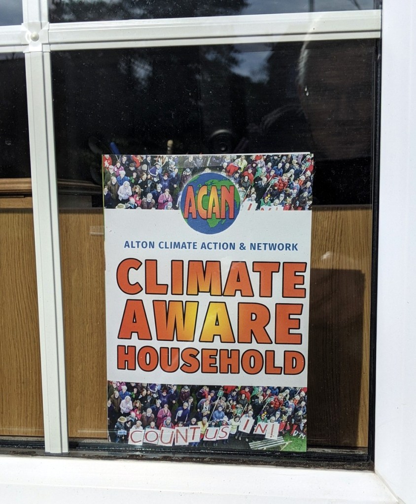 It’s not that climate-change awareness wasn’t already alive in our town. Following our long-established town Greening campaign and our 2015 rally in support of that November’s COP21 Paris Climate Talks, Energy Alton last March organised a door-to-door survey of popular attitudes to climate change. This demonstrated widespread concern and willingness to make changes (albeit small ones, and largely focusing on single-use plastic).