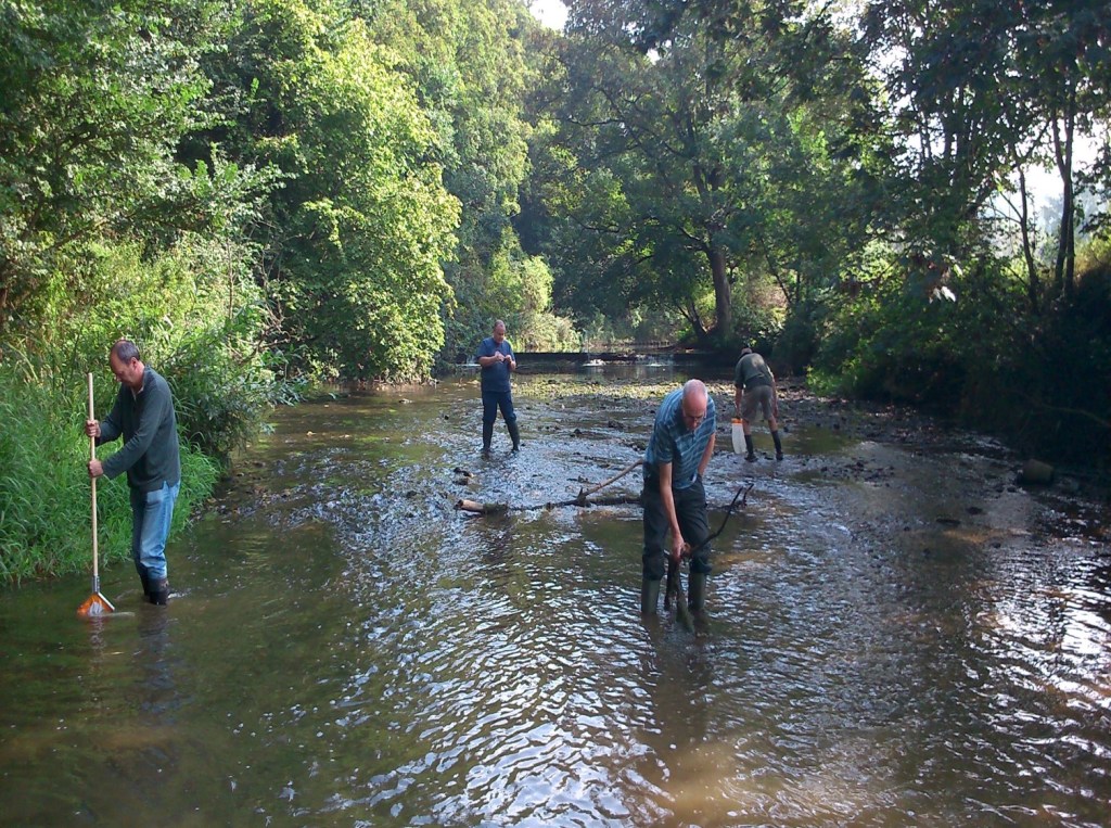 Kings Pond collects all of the sediment coming downstream and is slowly filling up. Also the large amount of food thrown in to feed the water fowl creates a nutrient-rich soup which damages the river. This has been picked up in Riverfly surveys which have shown low numbers of invertebrates in the river downstream of the pond. In an ideal world we would find a way to bypass the river around Kings Pond, allowing plant and invertebrate species downstream to bounce back.